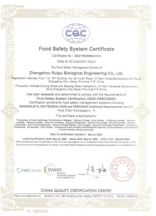 Established in 1998, Zhengzhou Ruipu Biological Engineering Co., Ltd. is a high-tech enterprise specialized in providing raw materials and basic nutritional solutions to food, dietary supplement and health industries. Ruipu people “dedicated to improving the health of human diet”, with more than 20 years’ development, we have grown into a group enterprise having three modernized production bases and cover an area approx 130,000 square meters, the annual output of nutrients nearly 30,000 metric tons. Now Ruipu is the leading brand in Chinese nutrition and health industries.